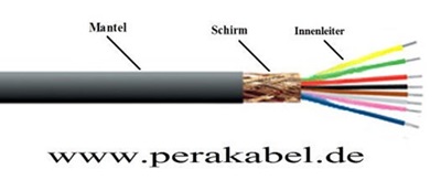 Schirmaufbau Geflecht aus verzinnt Kupferdrähten, geschirmt