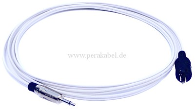 Kabel : Zwillingslitze 5 x 2,5mm ; Innenleiter 2 x 0,75qmm ; CCA ; Farbe: weiß Miniklinkenstecker : 3,5mm ; mono ; Amphenol Lautsprecherstecker : Knickschutz