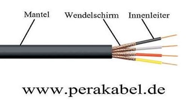 Wendelschirm um jedes der Innenleiter geführt—dadurch weniger gut trommelbar.
