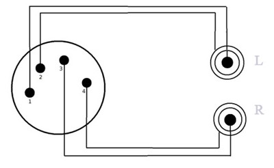XLR 1 an Tip / 2 Schirm ; XLR 3 an Tip / 4 Schirm ( Ring an 2,5mm Klinken nicht belegt )